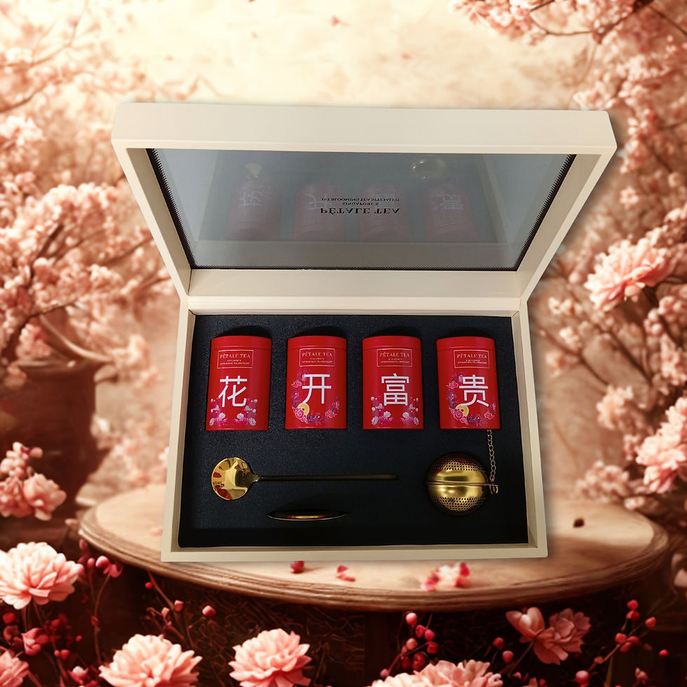 Stay ahead by exploring Petale Tea’s unique CNY collection – featuring luxurious blooming teas and festive blends like Floral Fortune and Coral Bloom.